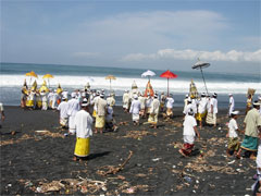 Nirarta, to visit the black-stone temple of Klotok, set on a black sand beach